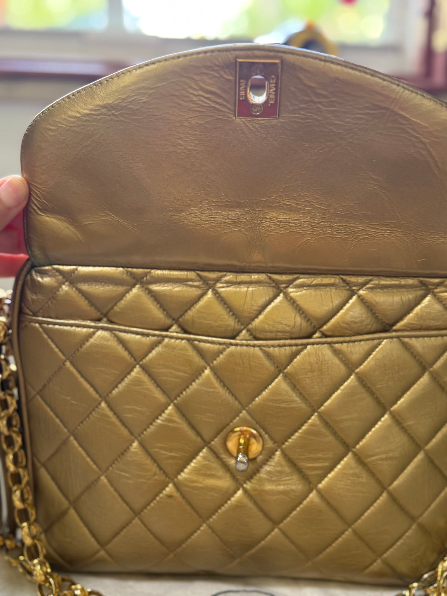 Uniquely good condition, supple shine and color. ICONIC 24K GOLD PLATED LOGO