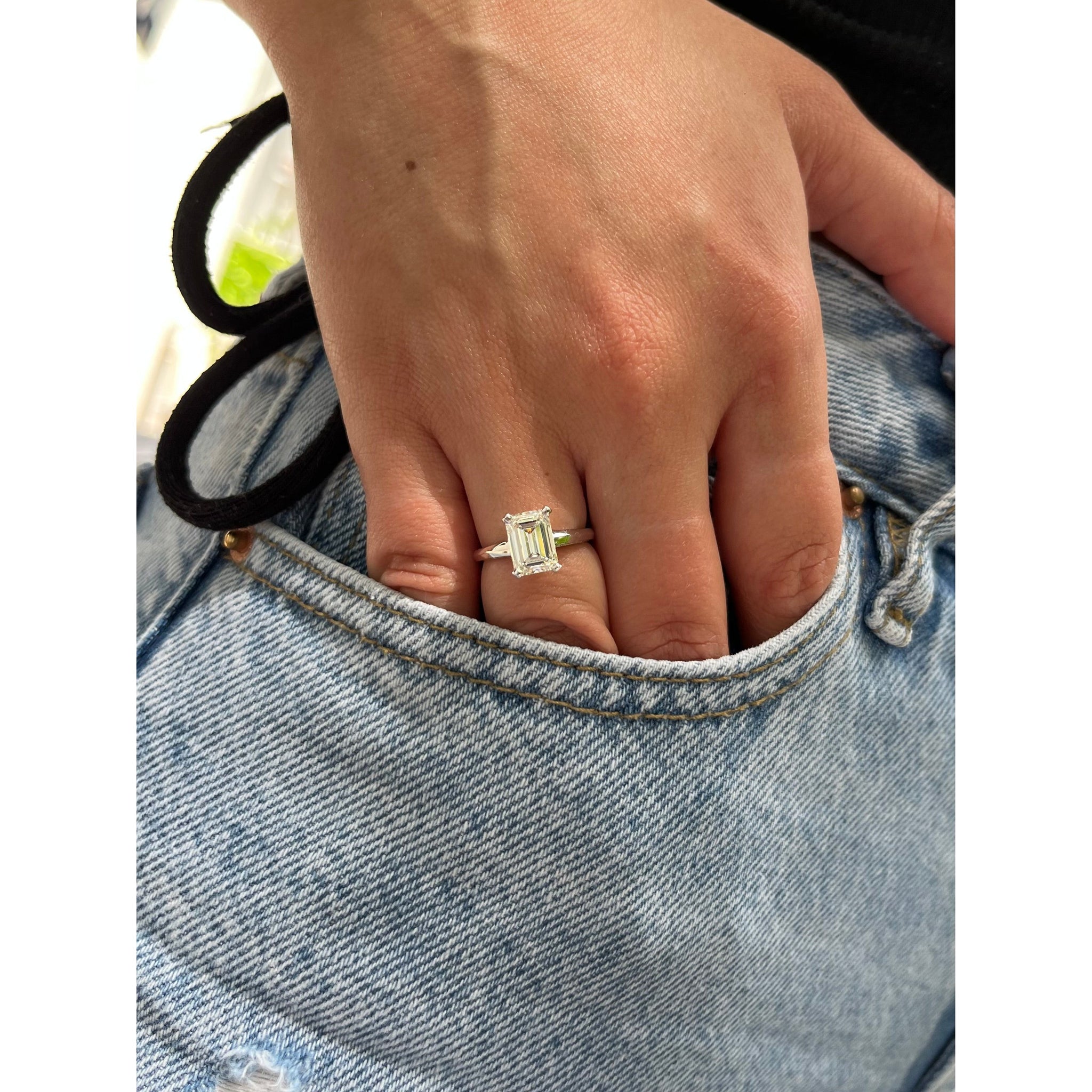 2.54 CARAT Emerald Cut Lab Diamond Engagement Ring in platinum. Emerald cut, G color, VS1 clarity.