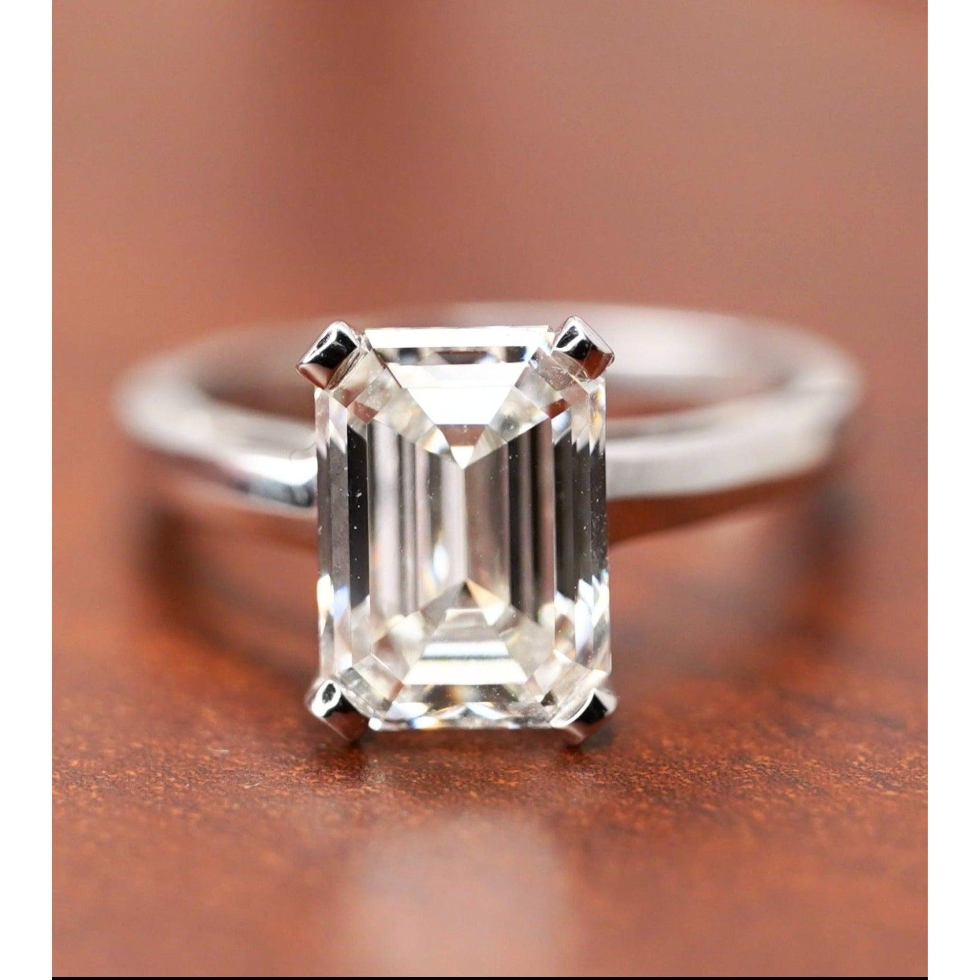 3.07 Carat Emerald Cut Lab Grown Diamond Ring in 14k White Gold Cathedral Setting