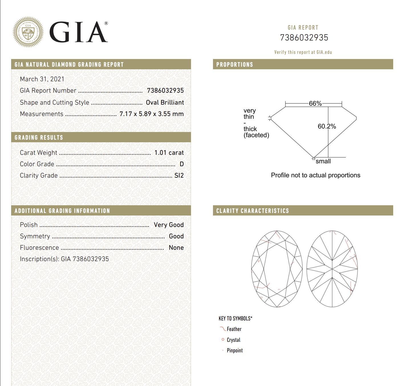 • Certification: GIA Certified - Report No. 7386032935