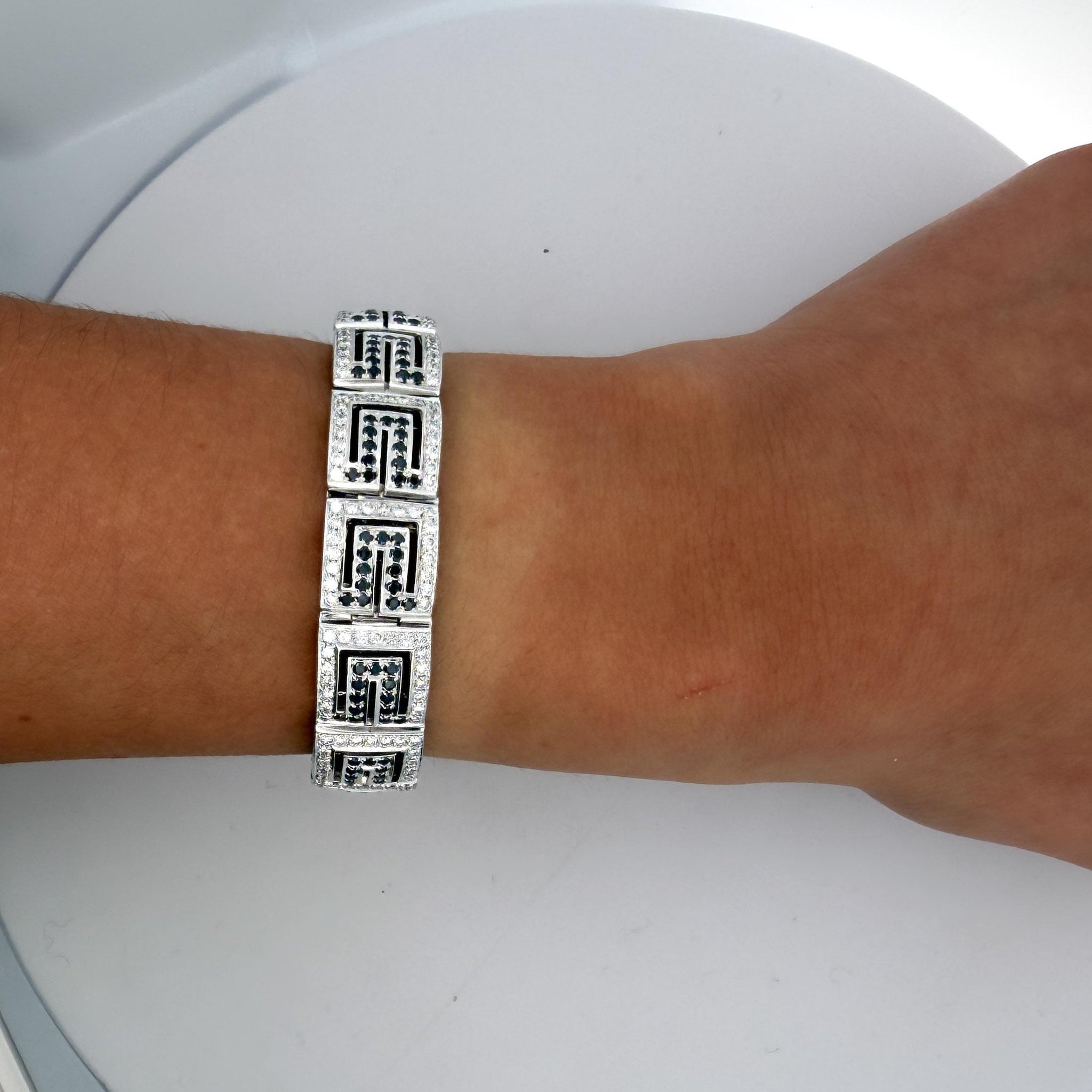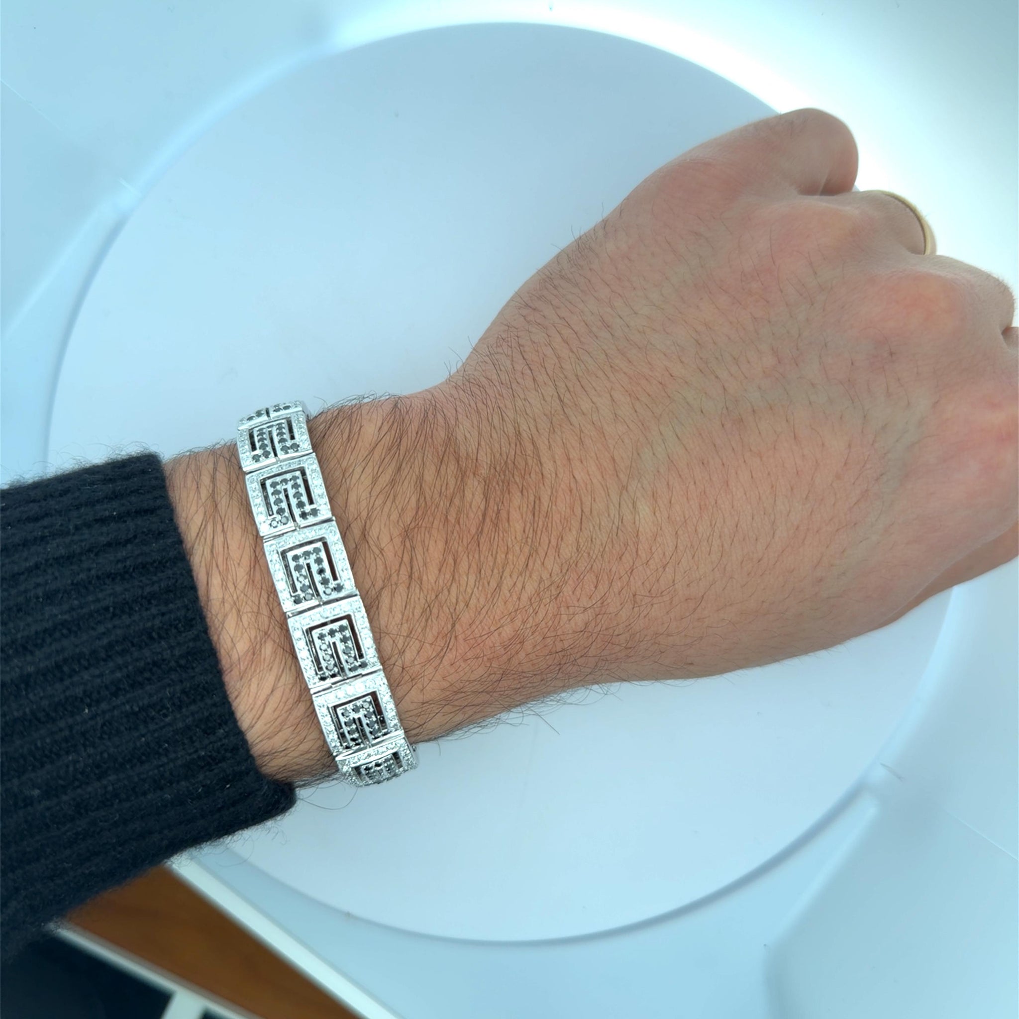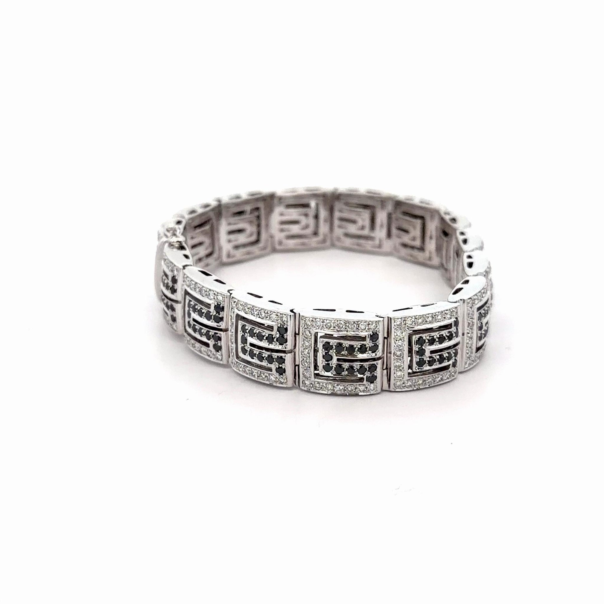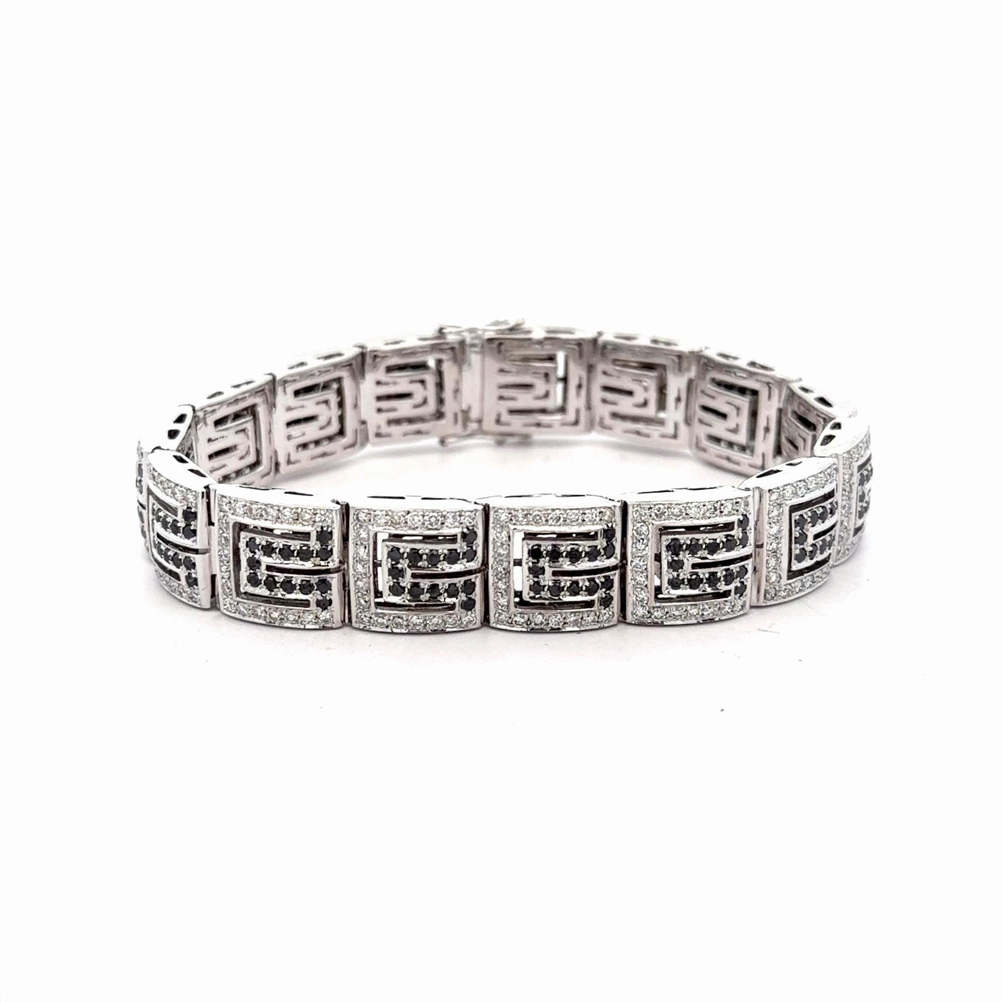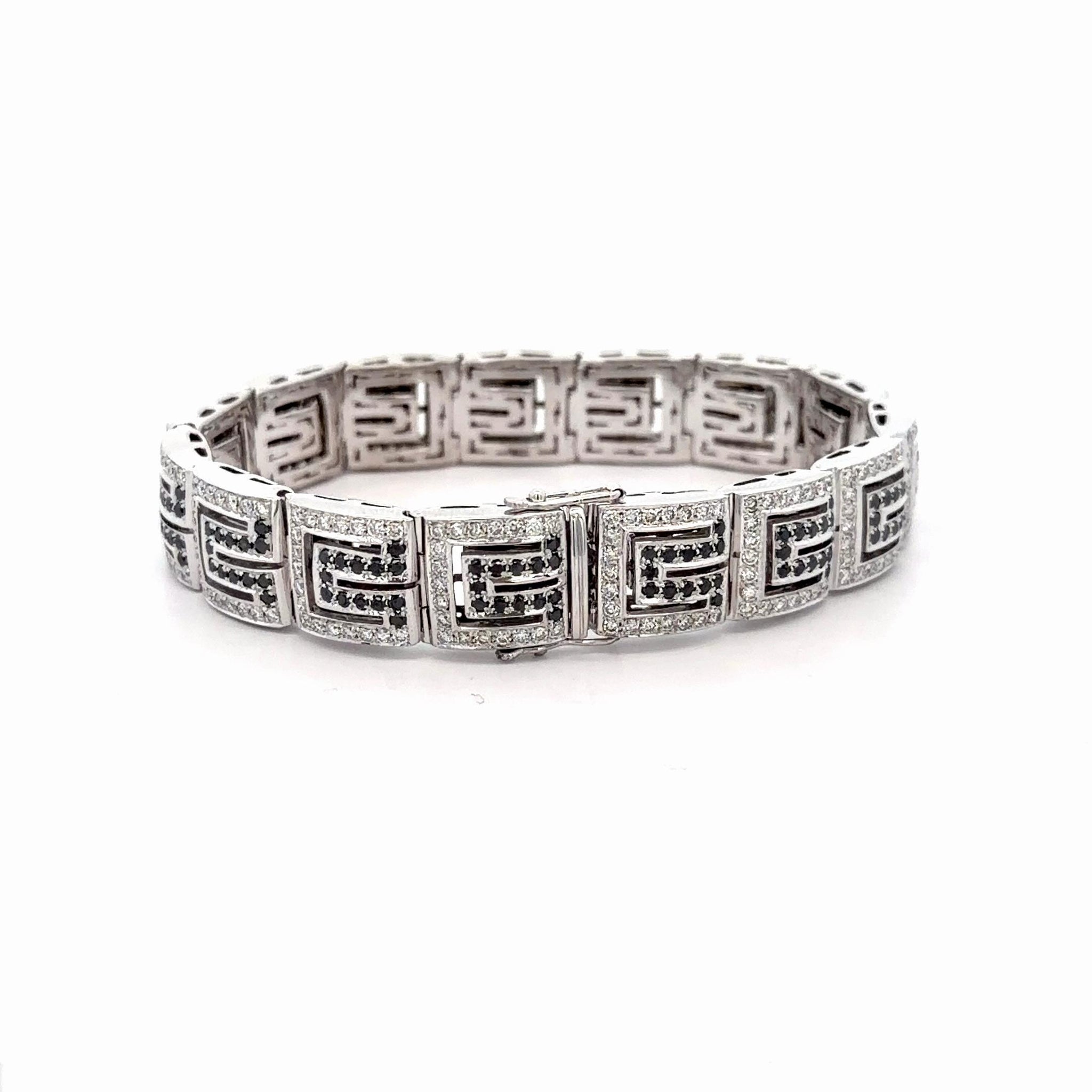 5.75 Carat Black & White Diamond in 18K White Gold Greek Key Bracelet