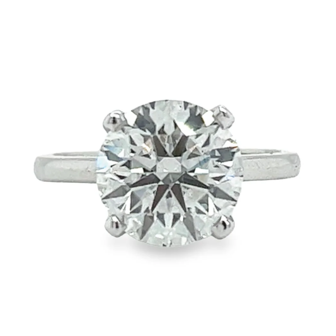 3,48 carats, taille ronde 'Idéale/excellente' G/SI1 solitaire diamant de synthèse CVD pour bague de fiançailles en or blanc 18k. La pierre centrale a été classée SI1 en raison d'une inclusion mineure qui n'est pas visible à l'œil nu. C'est en fait un énorme avantage car elle est évaluée au prix d'un G/SI1 mais ressemble vraiment à un VS2. Vous économisez au moins 1 500 $ de votre argent durement gagné. Vous obtenez donc exactement le même aspect qu'un VS2, mais vous payez pour un SI1.