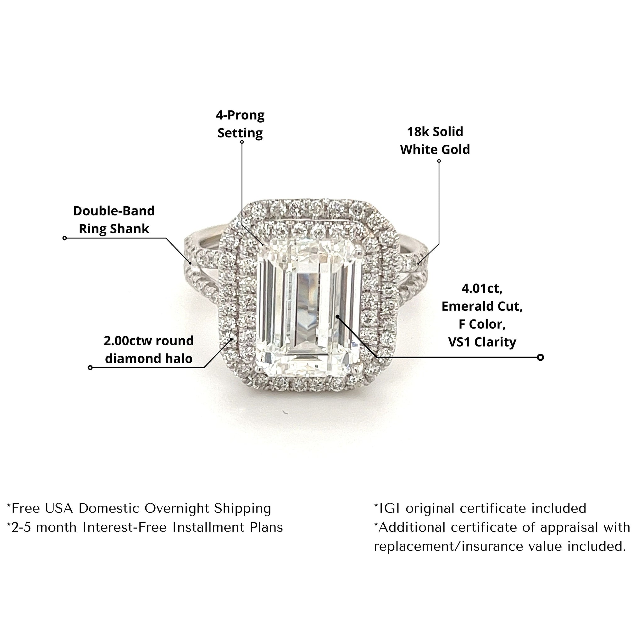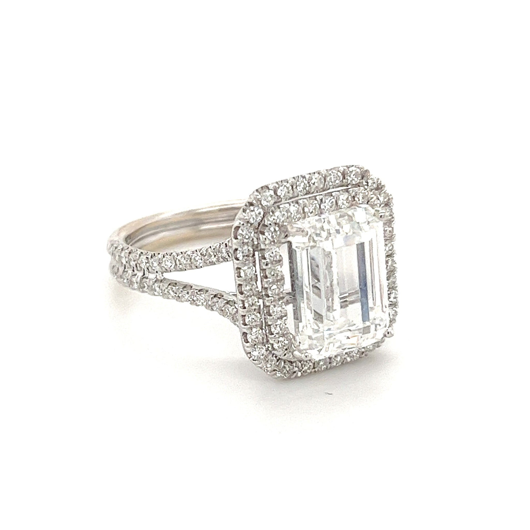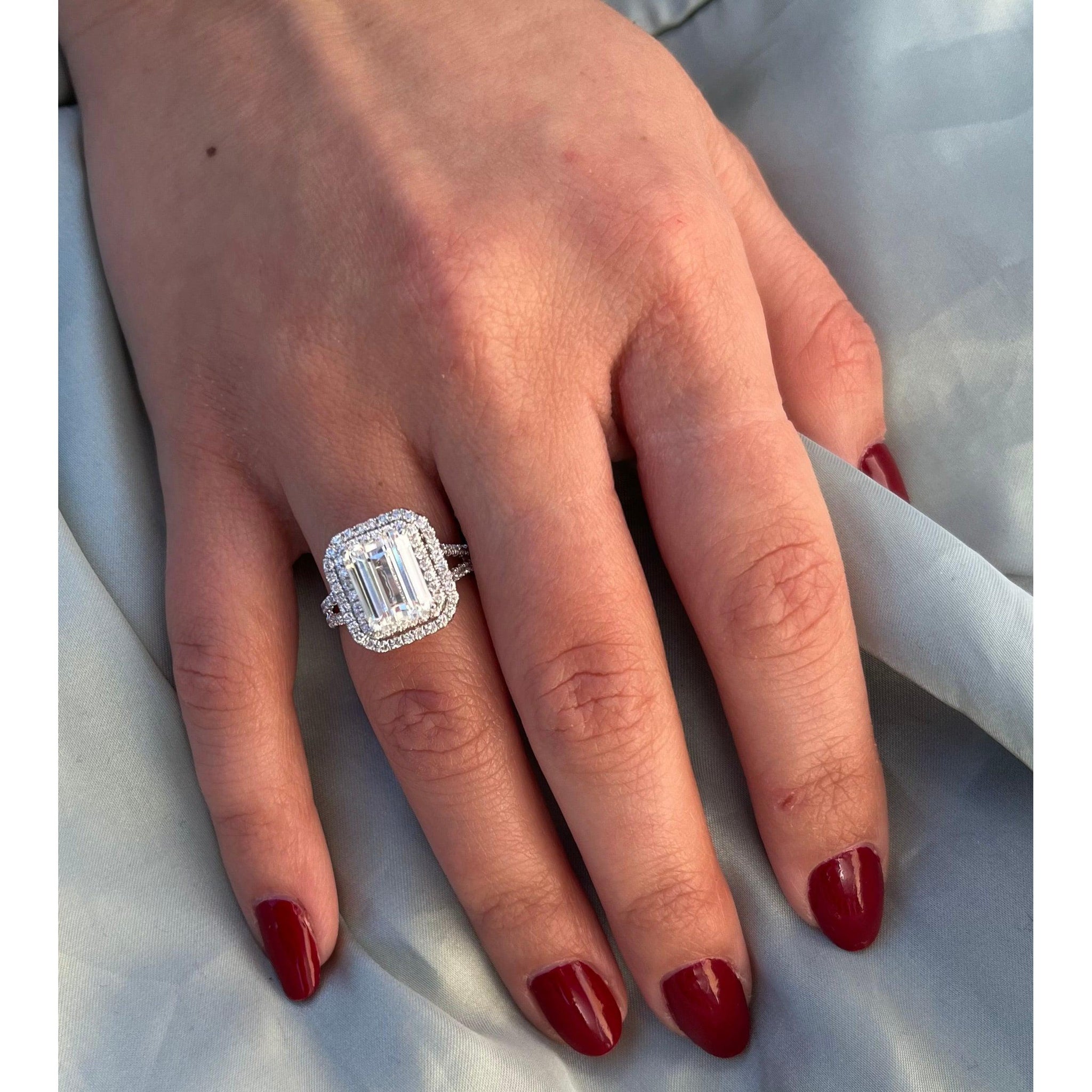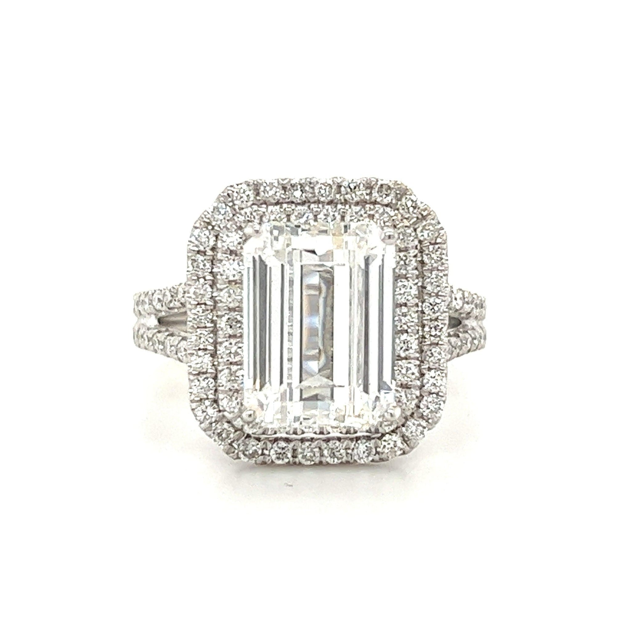4 CARAT Bague en or blanc avec diamant de laboratoire taille émeraude. Taille émeraude, couleur F, clarté VS1.