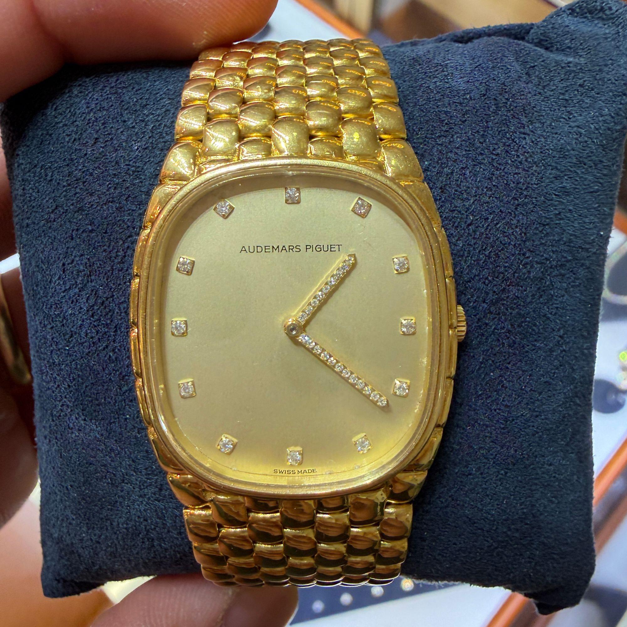 Vintage Audemars Piguet Cobra 18K Gold Diamond Dial Integral Bracelet Watch