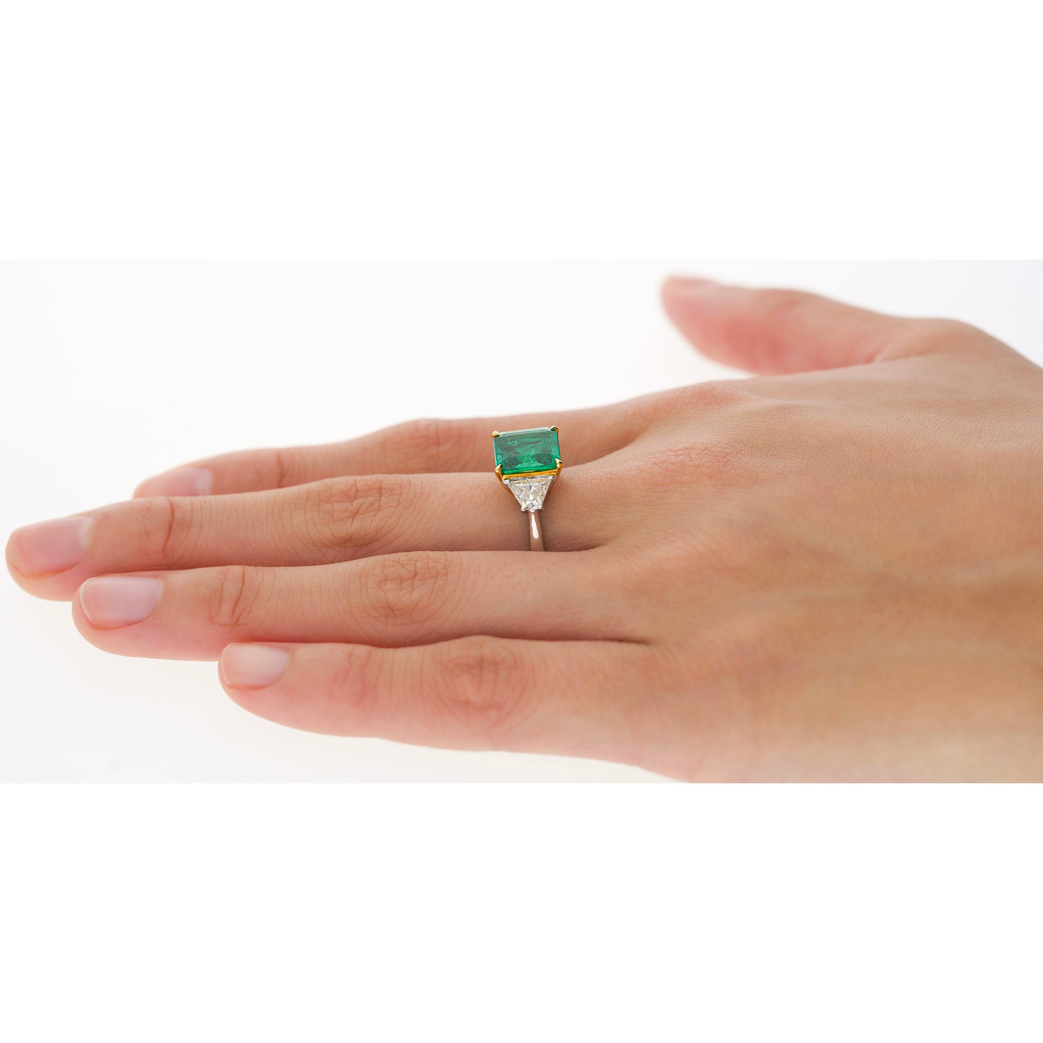 Natural AGL Certified No Oil Emerald & Diamond Detailing Three-Stone Engagement Ring.