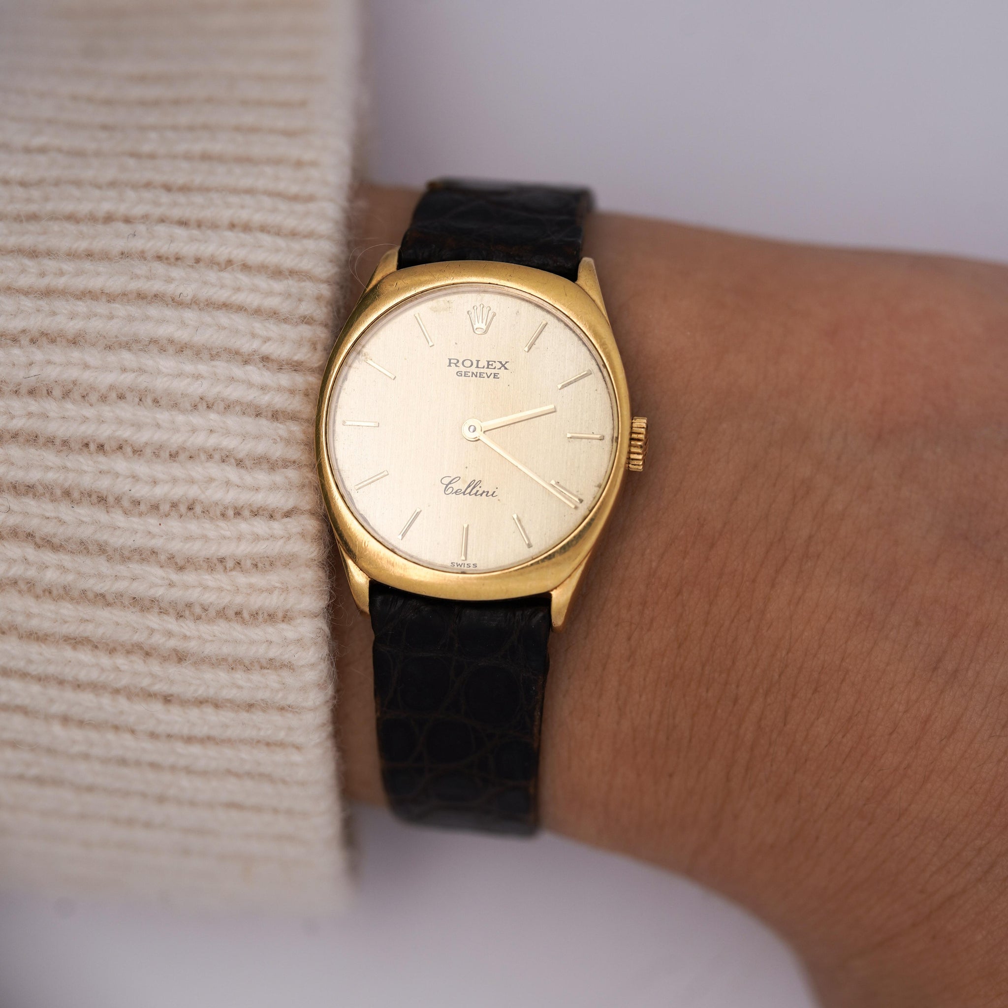 Rolex Cellini 18K Gold 4129 Manual Champagne 25mm Dial Leather Watch