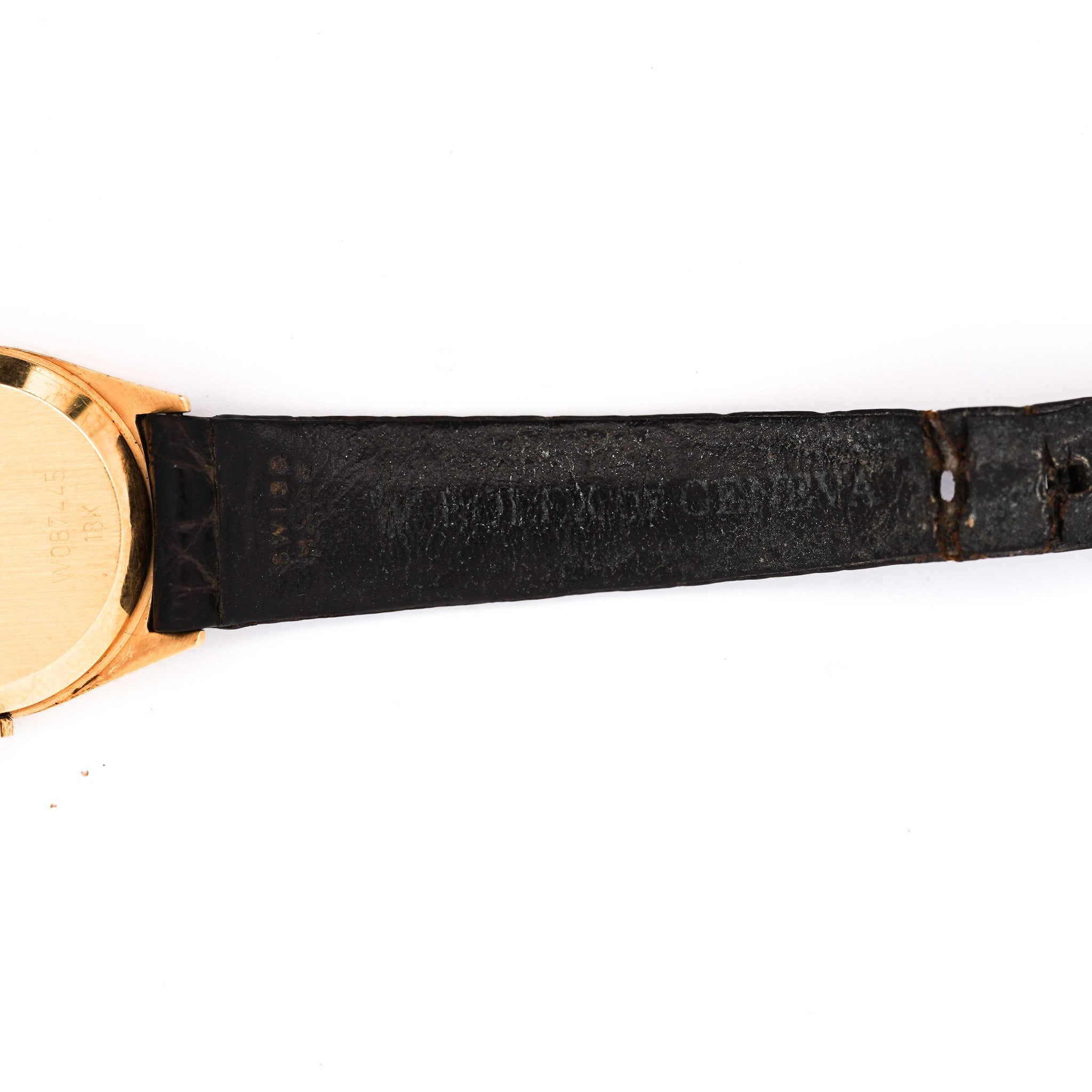 Condition: The Case is in very good condition, with the leather strap in fair condition, with visible wear marks and separation at the tip of the strap.