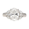 This engagement style ring features a 2.83 carat oval lab-created diamond and secured in a prong setting. Four round cut diamonds each weighing 0.43 carats, and four marquise cut diamonds weighing 0.43 Carats are intricately set around the centerpiece. All of these diamonds are set in a platinum ring. Sized at USA 6 and weighs 6.74 grams, this ring is a perfect blend of classic charm and modern sophistication.